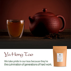 Débordant des saveurs et du caractère des Pu Erh, le Ya Hong Tao produit une liqueur intense et soyeuse, aux qualités presque indicibles. Imaginez la fusion des arômes puissants de votre Pu Erh préféré et du génie de nos artisans-planteurs. De quoi vous garantir une dégustation hors du commun !